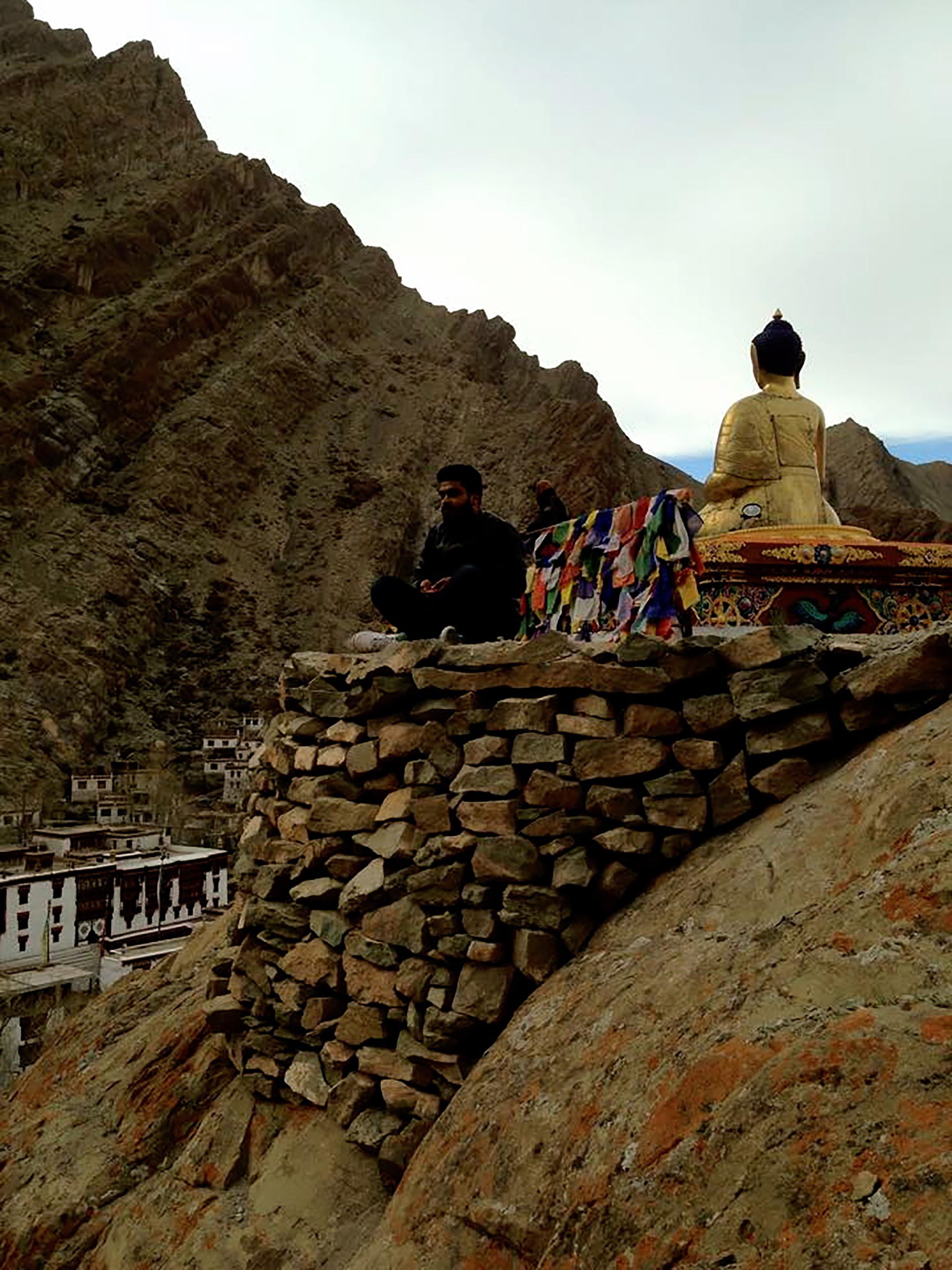 Amidst those huts and dwellings, everywhere around the city, I found the nucleus of Ladakh: the monasteries, some older than half a millennium, some new, but each distinct with its own special characteristics. They maintain their styles and none look out of order. A 40ft statue of Buddha, with only his face visible, is enough to send me into a surreal state. And that state is maintained when I see again a large Buddha statue sitting alone, atop a hill overlooking the city, forever in the eyes of its people who feel safe knowing that he’s watching over them. Some monasteries are hidden away. They are only for seekers, not for casual observers. I trek and climb 14,000ft to reach one of them. I’m on the roof of the world. From where I was standing, I could see a monastery tucked away inside the ridges of a peak. Beside me were two temples – a few monks, one cave and that’s it. Cut off from humans, I decide to sit with them, contemplate and share philosophies over pints of butter-tea, until I feel rejuvenated, even if it’s for a short amount of time.