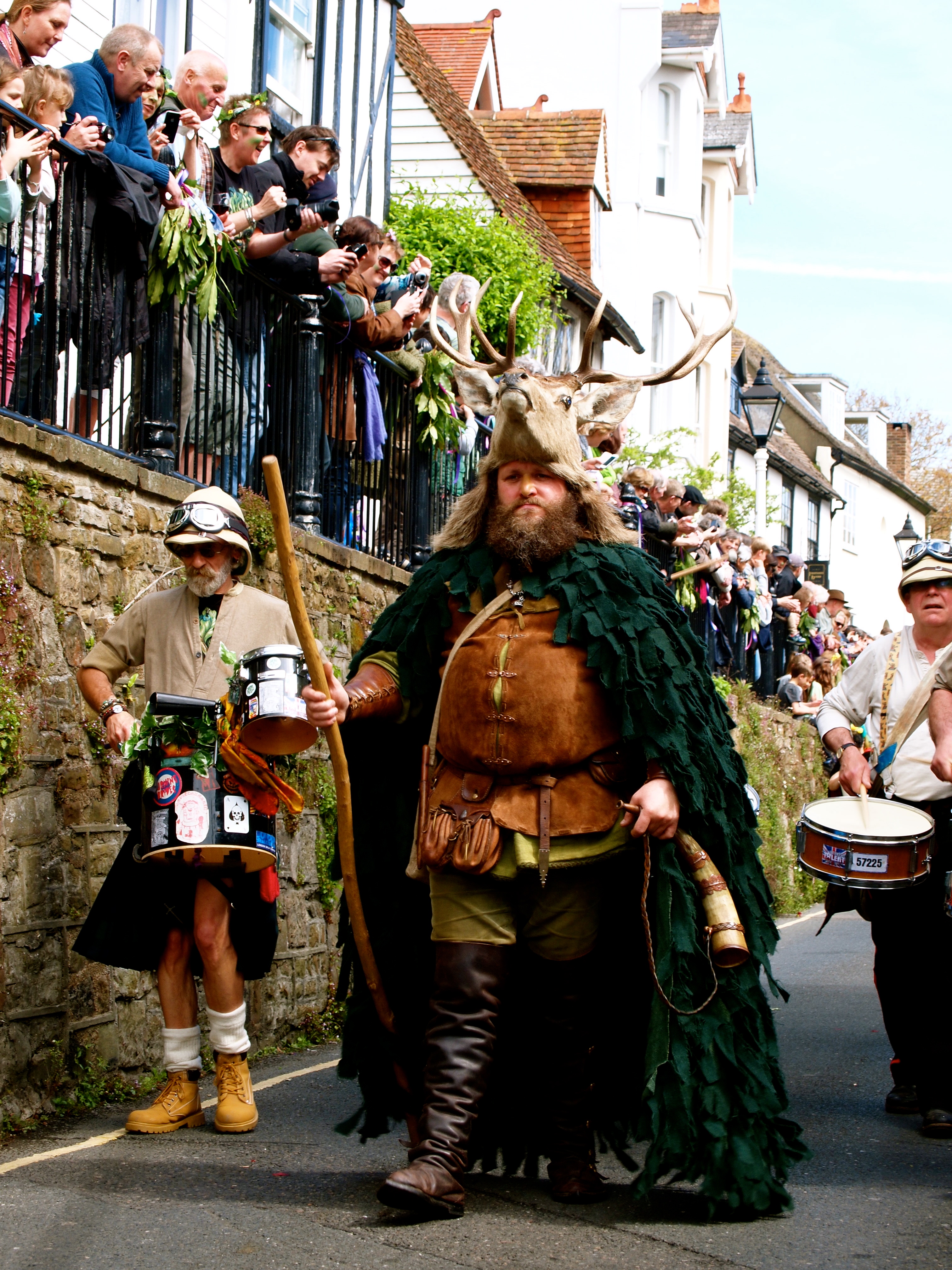 The Jack swaggers through Hastings Old Town, accompanied by a gaggle of puke-green Bogies (no, not the nose gunk), Hobby-horses and the considerable heft of Herne the Hunter. People crane their necks and dangle precariously out of windows to catch a glimpse of the mayhem.