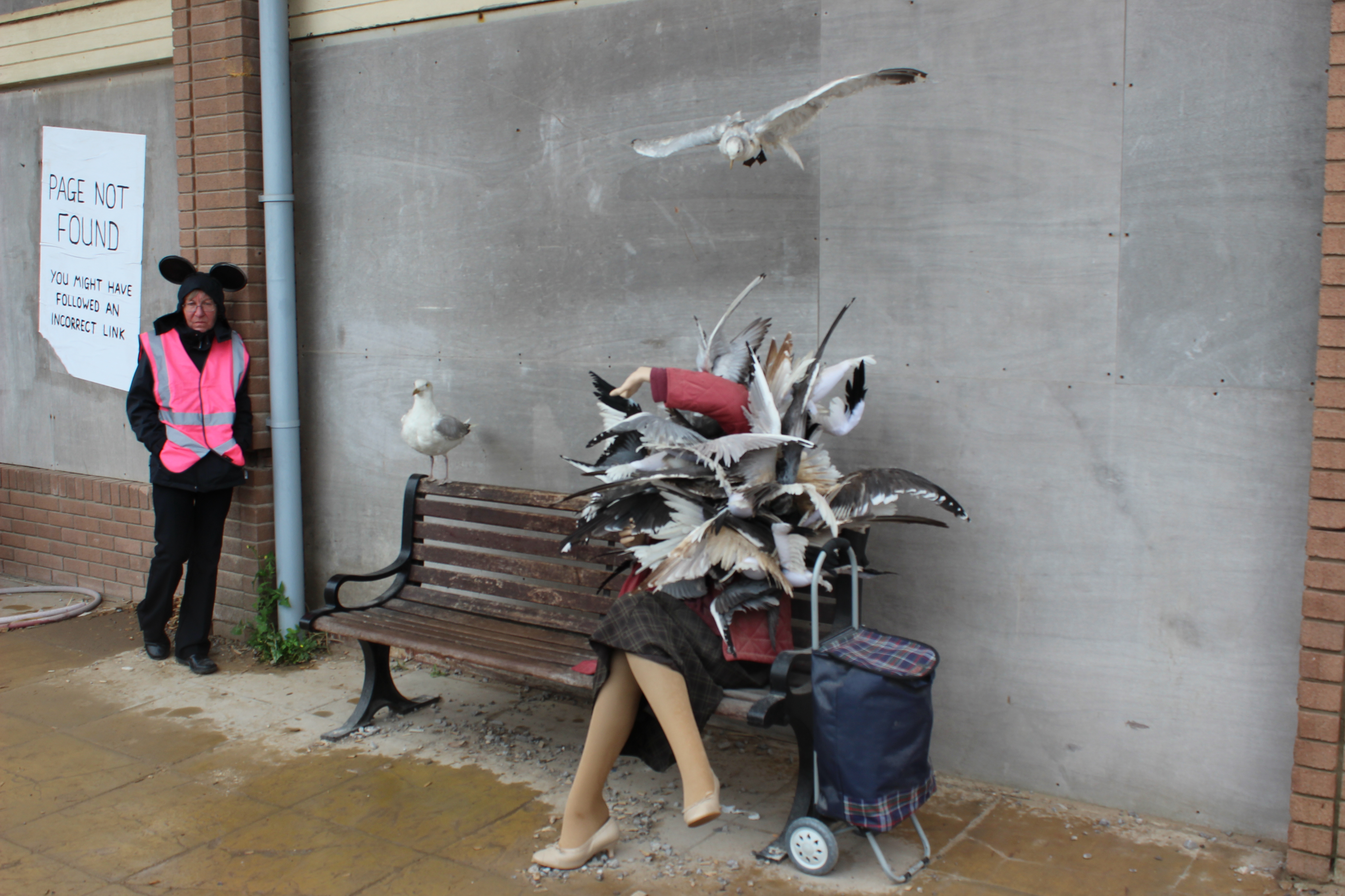 The non-empathetic satire in the very fibre of Weston-super-Mare’s latest attraction also extends to its staff. Faced with an airport security-style reception, it was interesting to see how the atmosphere was manipulated by unwelcoming staff who played on your friendly demeanor. Once through the cardboard scanners, the rain endures overhead as you’re greeted by a burnt-out ice cream van. Walking around, many of the artworks had a sense of piss-taking, but with a strong aftertaste of truth.